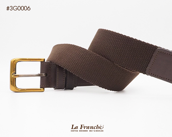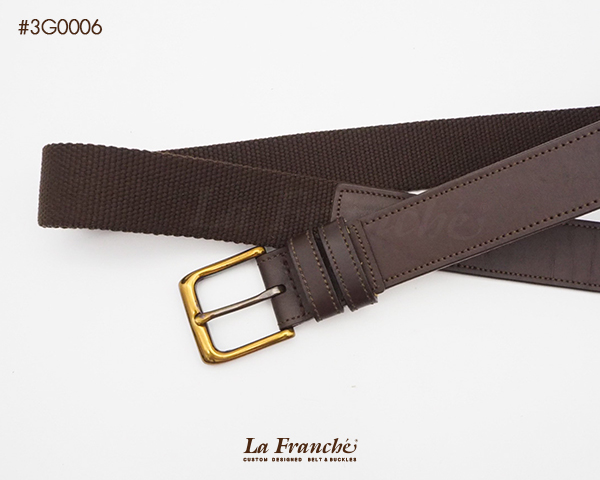 เข็มขัดผ้าสี chocolate ผสมหนังวัวแท้สีน้ำตาลเข้ม พร้อมหัวเข็มขัดทองเหลือง - code 3G0006